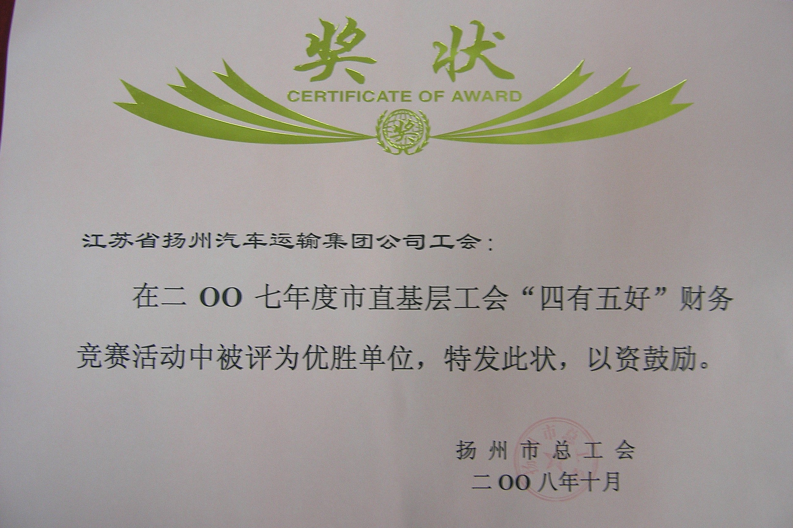 > 工會獎狀