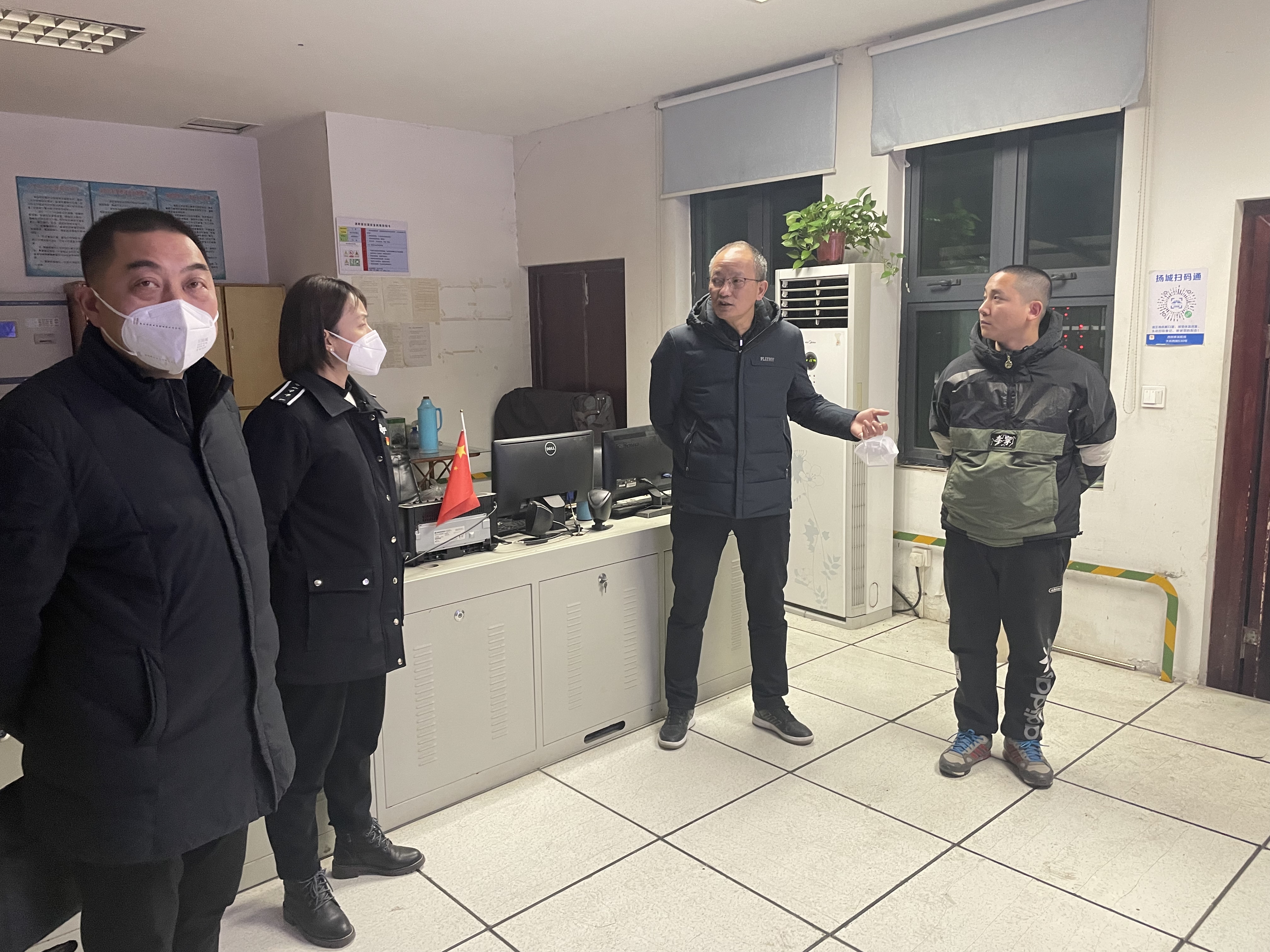 為全力做好春運期間安全保障工作,從細微處管起、從細節處抓起,強化領導帶頭、強化常態監督,1月18日,揚汽集團副總經理徐建波帶隊,通過“四不兩直”的方式對揚州汽車站夜巡崗以及消防控制等安全重點崗位工作進行督導檢查,揚州汽車站相關負責人陪同檢查。